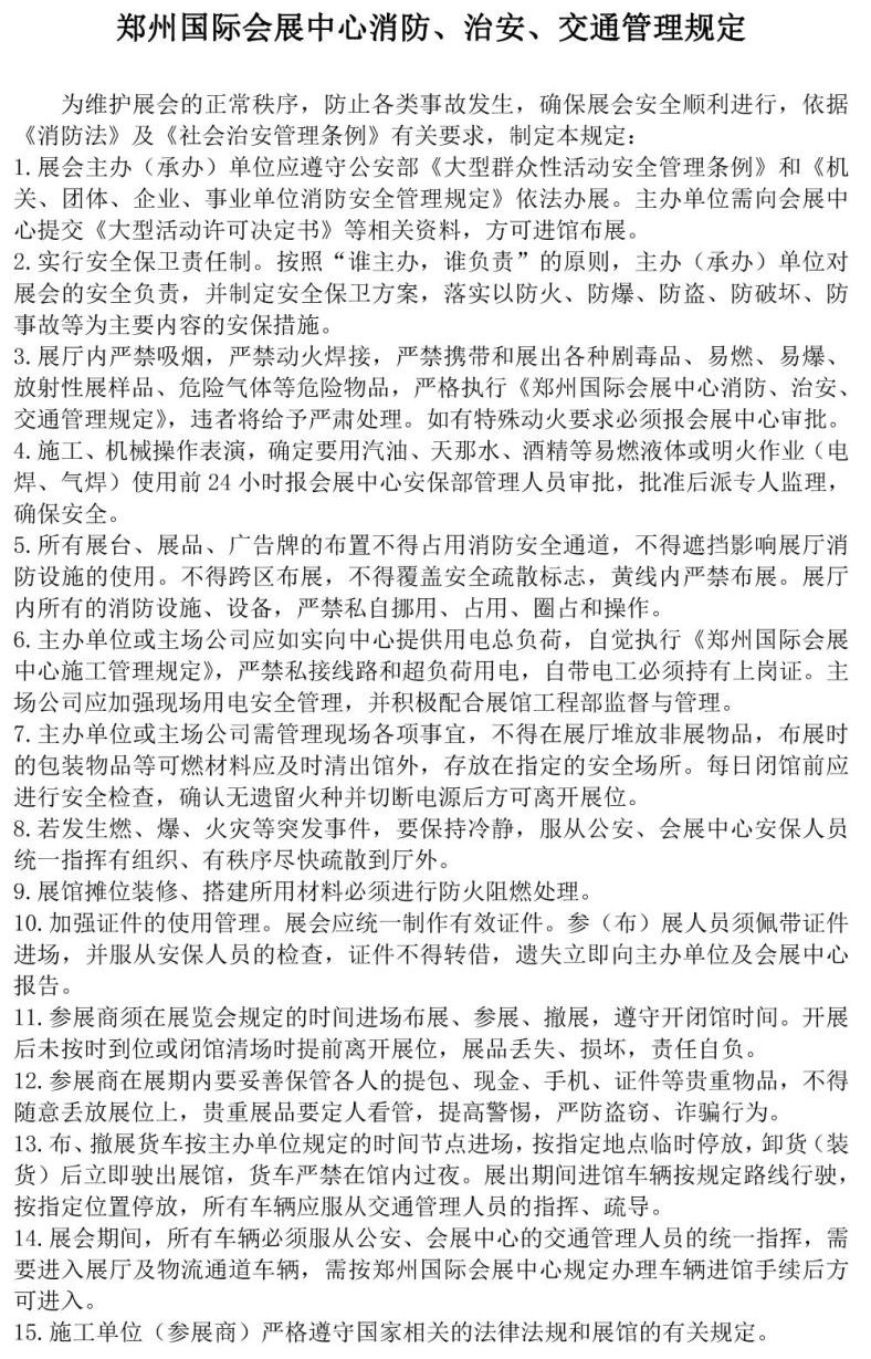《鄭州國際會展中心消防、治安、交通管理規定》文件下載