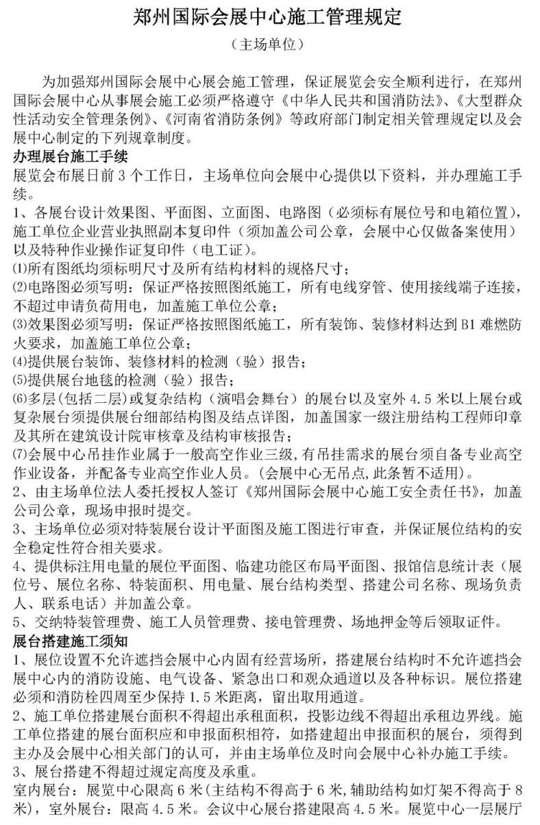 《鄭州國際會展中心施工管理規定(主場單位)》文檔下載