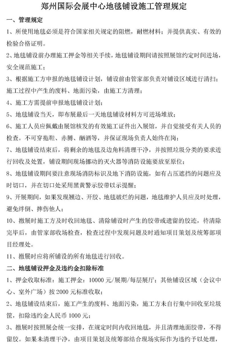 《鄭州國際會展中心地毯鋪設施工管理規定》文檔下載