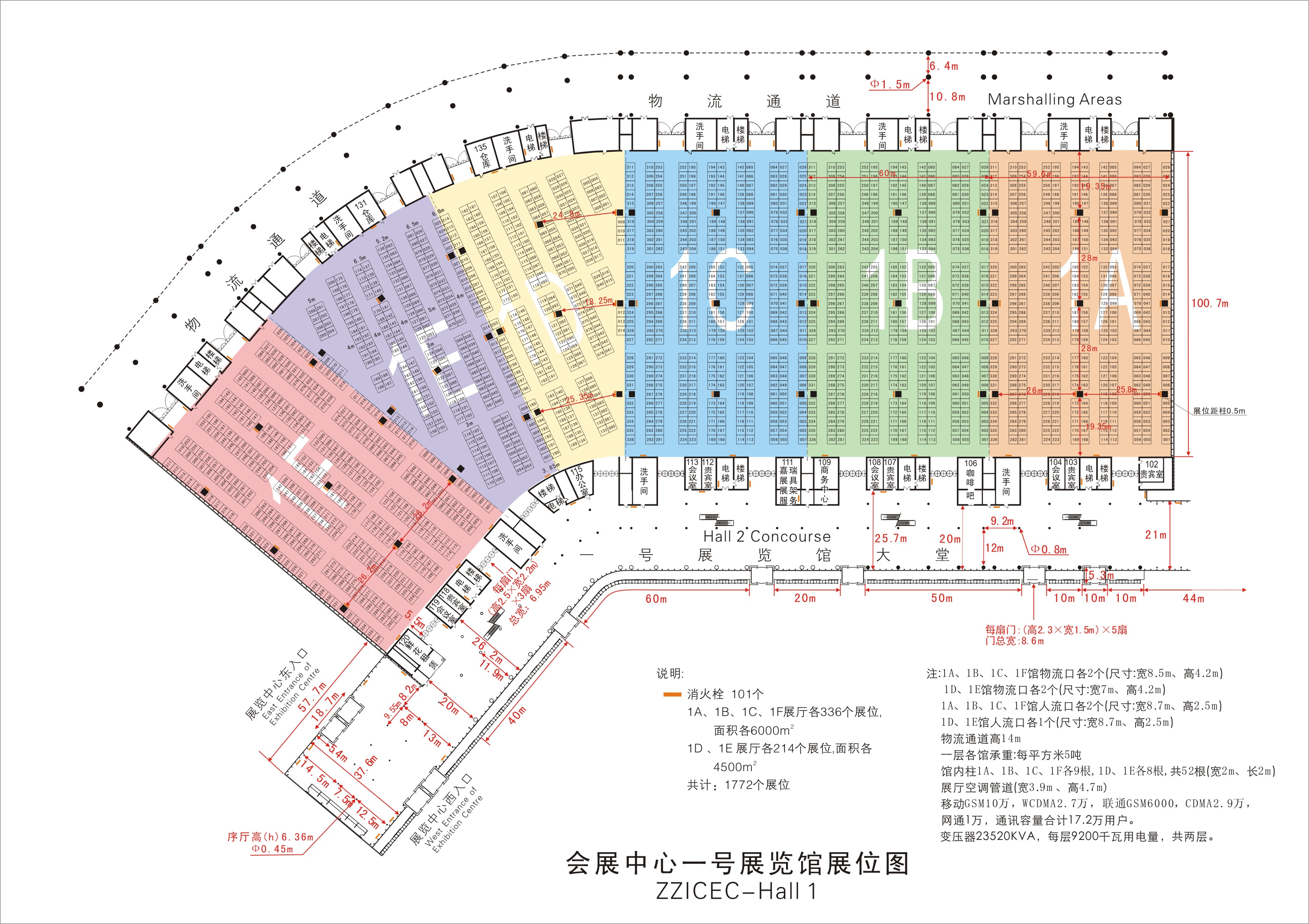 首頁展館介紹場館設施文章詳情 文章詳情 展覽中心平面圖及實景圖 1號展館3.3萬平方米,1772個標準展位,凈高14米,地面承重5噸/㎡; 2號展館 3.2萬平方米 ,1622個標準展位 ,凈高17.6米 地面承重1.5噸/㎡ ; 三層連廊(240mx26m),室外展場 3.8萬平方米, 停車場4.5萬平方米,設1800個停車位。
